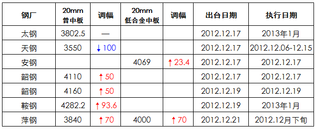 中厚板鋼廠一周調(diào)價匯總(12.14-12.21)----君鵬鋼